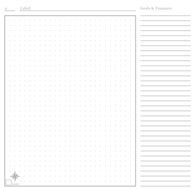 The Cartographer (mapper) – one player that keeps track of the player characters in the location. This player can use graph paper or just bubble maps to track movement and important information for reference later. It’s easy to get lost if you don’t have a map. If the players don’t keep track of their location, it’s on them. I recommend you print out the Dungeon Journal pages.